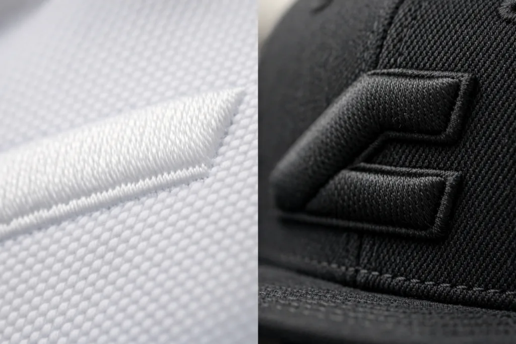| 3D (Puff) Embroidery | Raised, foam-filled surface effect | Baseball caps, outerwear logos |
